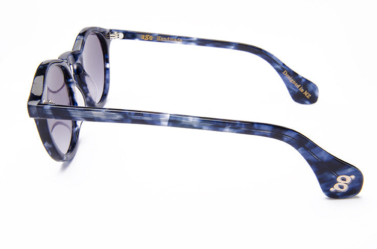 Our Blue tort has various mottled tones of blue create the depth and beauty in this colour. More translucent areas it allows the sun to shine through and make them stand out. Grey Mono Lens