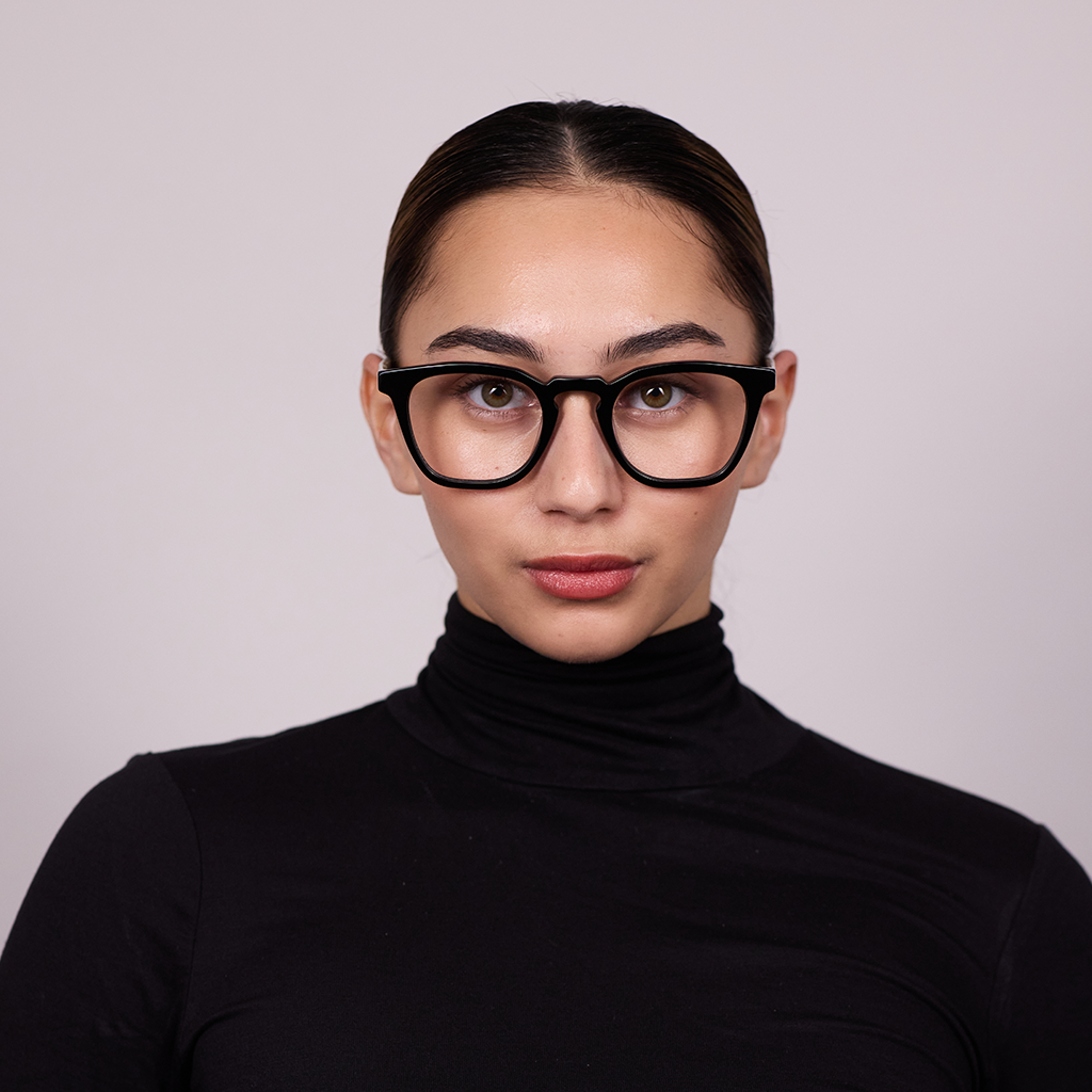 Classic black acetate with our signature bone on the inside of the frame completed with either a green, orange or blue monochrome lenses.